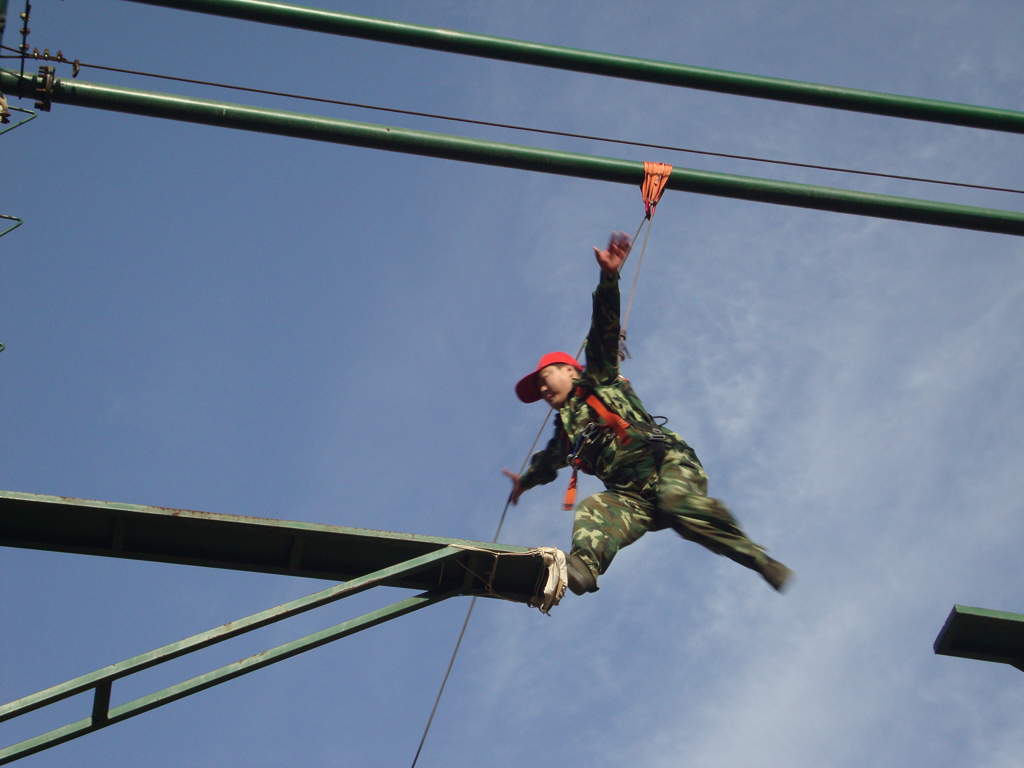 高空斷橋:在距離地面8米的高空搭起了一座獨木橋,而這個橋的中間卻是斷開的,間距1.2米-1.4米,要求每個隊員爬上8米的高空后,在空中躍起,從橋的這側跳到另一側, 雖然身上掛滿了安全保護措施,但在高空跳躍,每個人都產生了或多或少的恐懼感,從爬上去站到高空已是一次極大的考驗,從高空躍到對面更是一次心理的挑戰(zhàn)。有的同伴從滿臉通紅到面色蒼白,有的戰(zhàn)戰(zhàn)兢兢不敢站立,有的站了許久不敢躍起,還有的上去之后直叫:“我有恐高癥!是真的……”在隊長的帶領下,我們?yōu)槊恳粋參訓的隊員“加油”,目送他們一個一個爬上搖搖晃晃的高桿,然后不斷呼喊他們的名字,每完成一個步驟都熱烈地鼓掌高呼。結果,全隊20多名隊員都順利完成了這項訓練,zui后大家用熱烈的掌聲慶賀自己的成功和勝利。 此項目心得體會:表面看起來很難的事,其實并沒有想象中那么可怕。在工作、生活中,遇到困難并不可怕,怕的是失去解決困難的勇氣和信心!心理的障礙是zui難逾越的,我們如果要成為強者,首先就必須挑戰(zhàn)自己的恐懼感,當我們豁出去一搏,勇敢地跨出一小步,也許就能抓住屬于自己的機會,實現人生一大步的跨越。