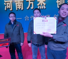 20131230日,公司在二樓演播大廳再次召開了表彰大會,授予品保部陳志遠同志“創新標兵”榮譽稱號、授予品保部常玉強同志“榮耀之星”榮譽稱號,對黃金層蒸房改善小組獎勵現金1000元。董事長親自為其頒發榮譽證書和獎金。